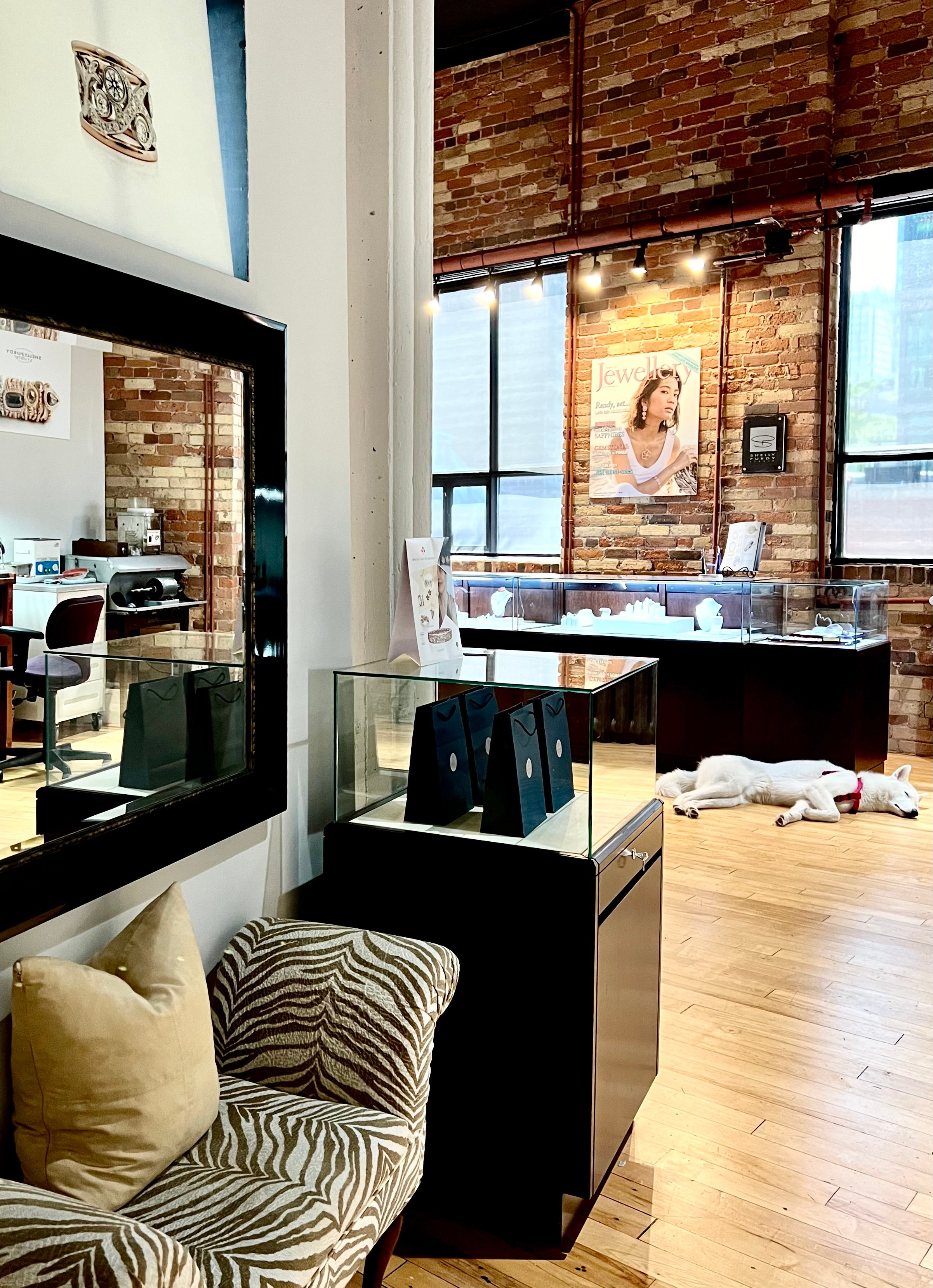 Our beautiful and creative space offers a truly personalized experience, and our convenient location makes it easy to see our jewellery in person!