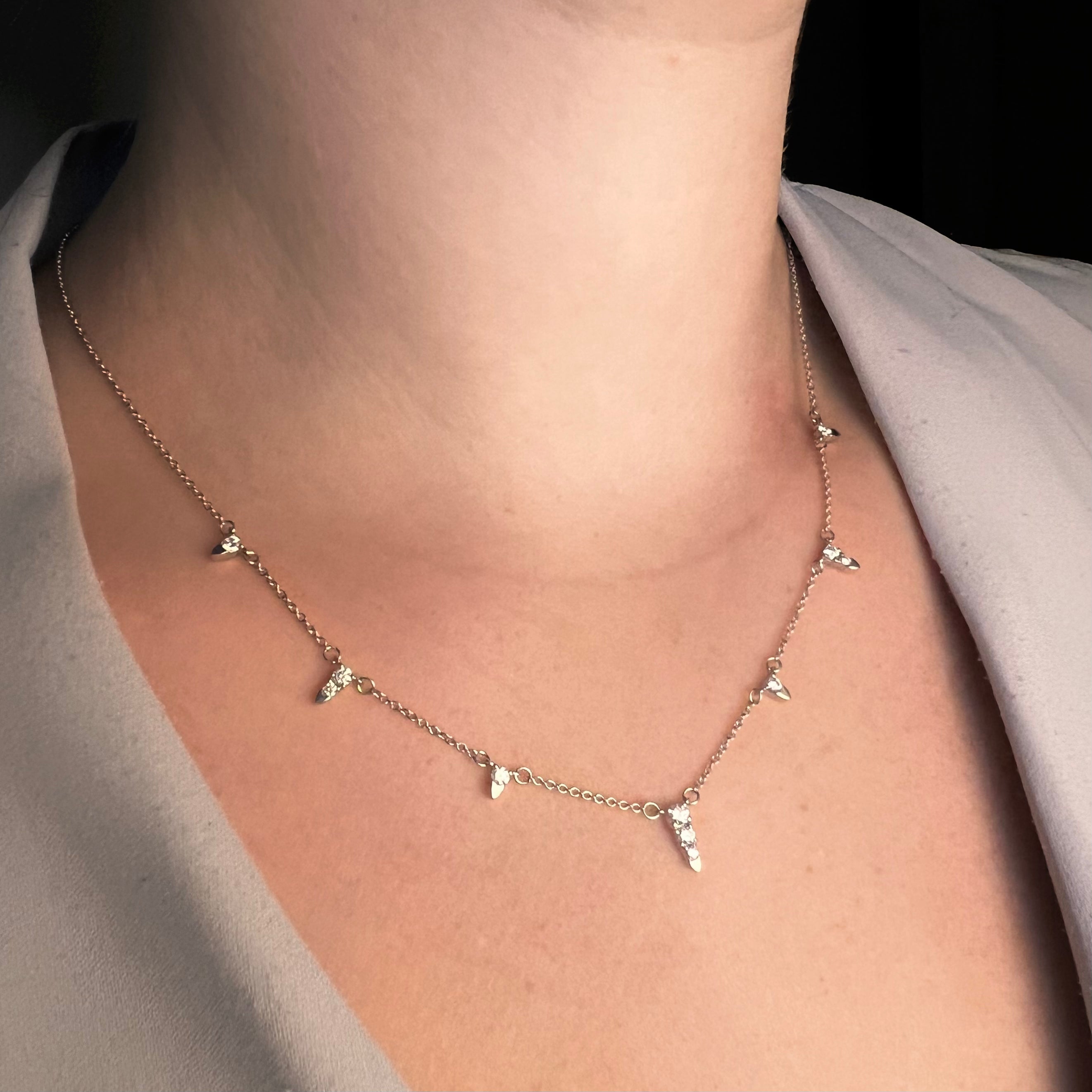 The Baby Multi-Icicle Necklace captures the magic of a winter morning, where melting icicles dangle like diamonds in the sun. Inspired by the playful spirit of the season, this delicate piece is perfect for those who love the thrill of fresh snowfall—whether skiing down the slopes or embracing a spontaneous snowball fight. A timeless reminder that winter’s beauty is meant to be enjoyed.