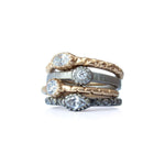 A stylish band on its own or as part of a stack, this Bound ring sparkles with a 0.20CT round brilliant-cut diamond of VS clarity and G/H colour. Available in 14KT white, yellow, or rose gold. Ring shown is 14KT brushed yellow gold.