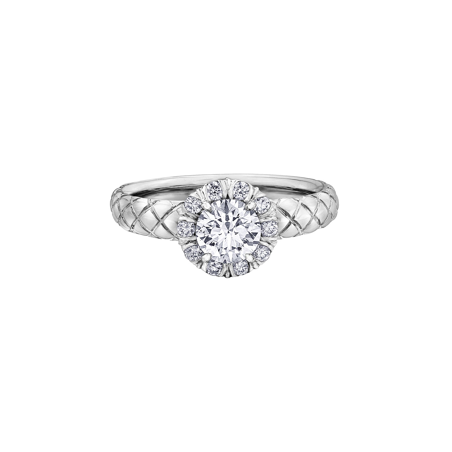 Feel the snow crunch with each step, the air clean and fresh. It's winter in Canada! Crafted in 18k Pure White™, the Diamond Fur Halo Engagement Ring features a round brilliant-cut Canadian centre diamond and small accent diamonds in a fur-trim halo!