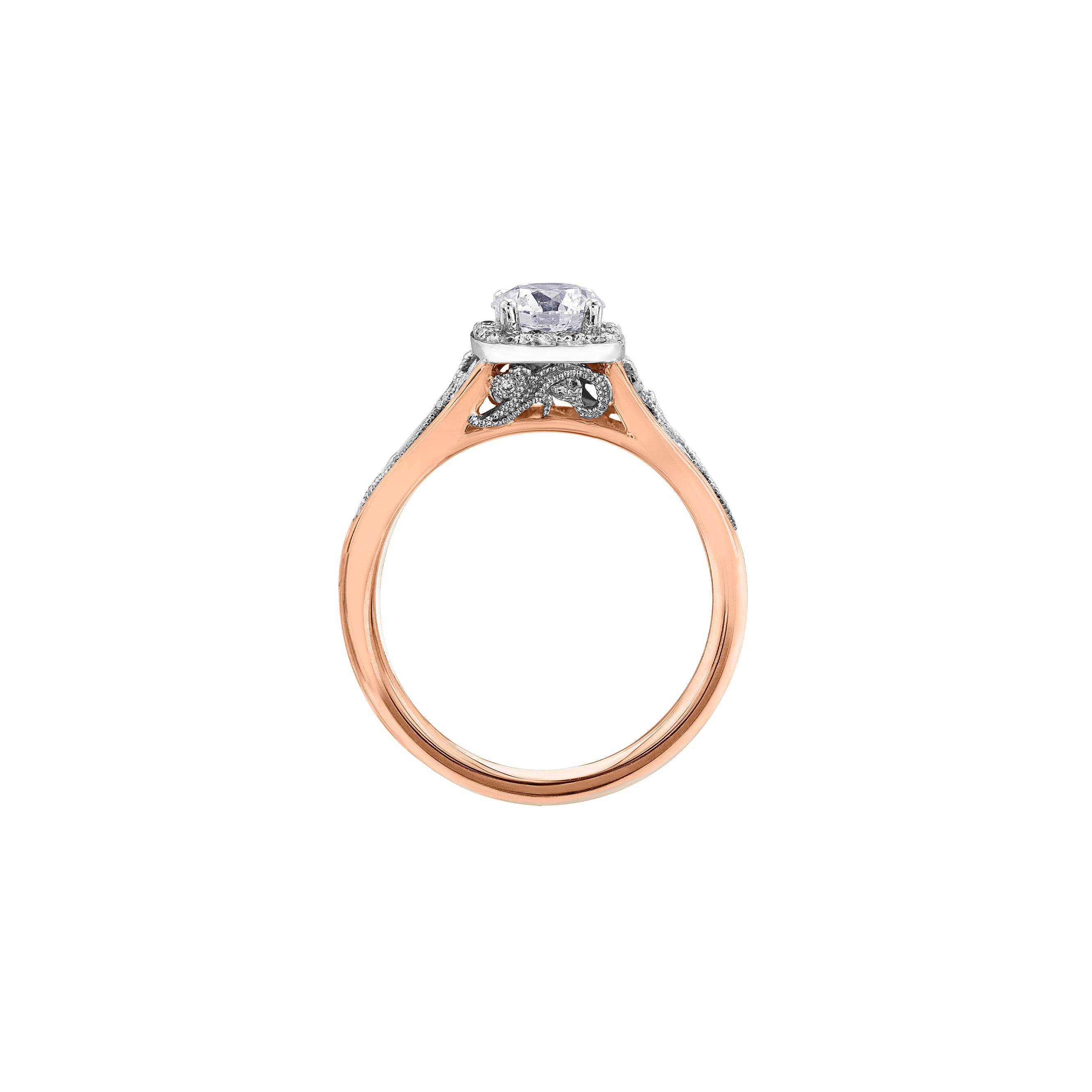 Fall in love with the brilliance of a 0.70CT Canadian diamond wrapped in more diamonds (0.10CTW) and set in a filigree garden in 18KT white and rose Certified Canadian Gold. Round brilliant-cut Canadian diamond centre optional. Total carat weight for the ring is 0.80. Available with centre diamond in round brilliant cut or cushion cut.