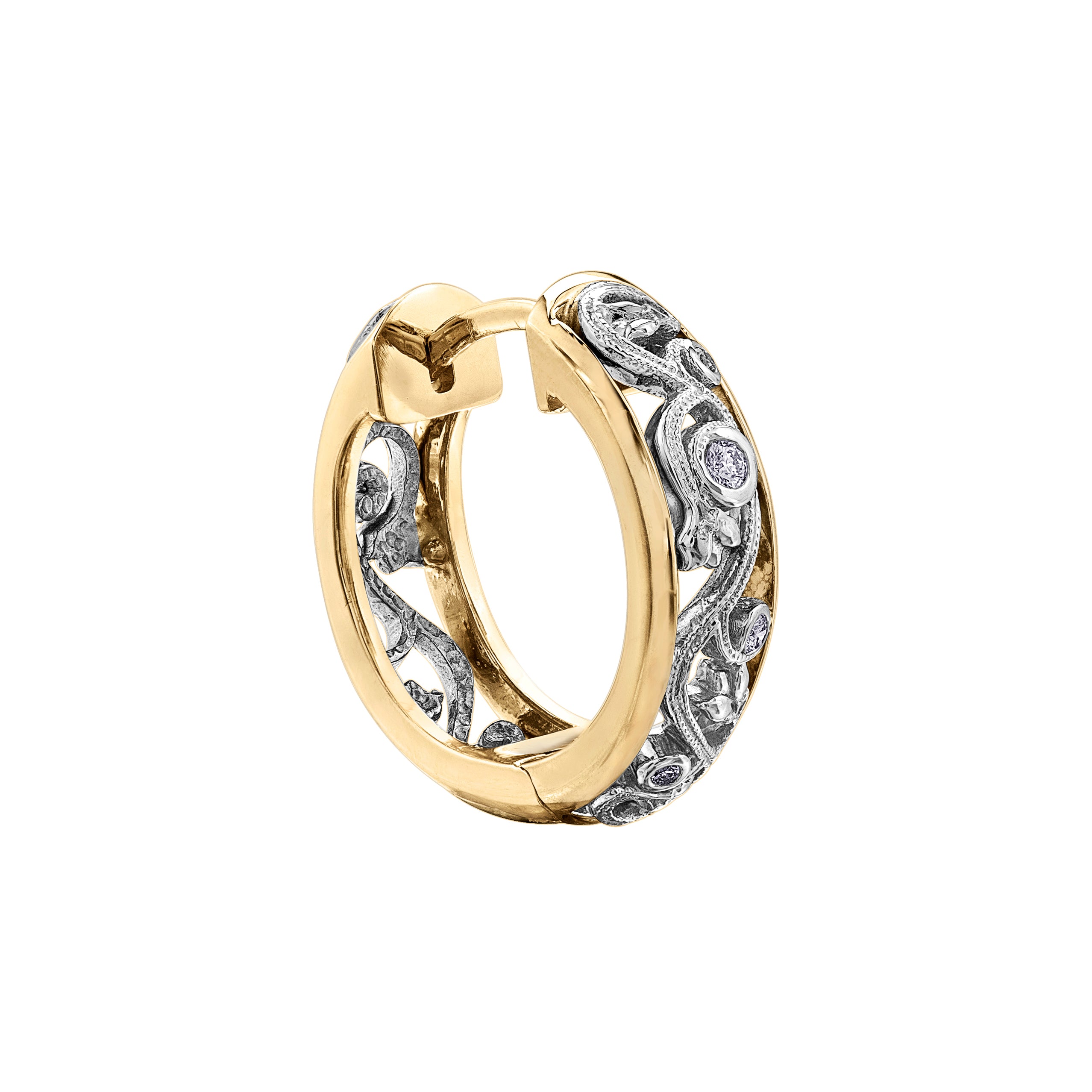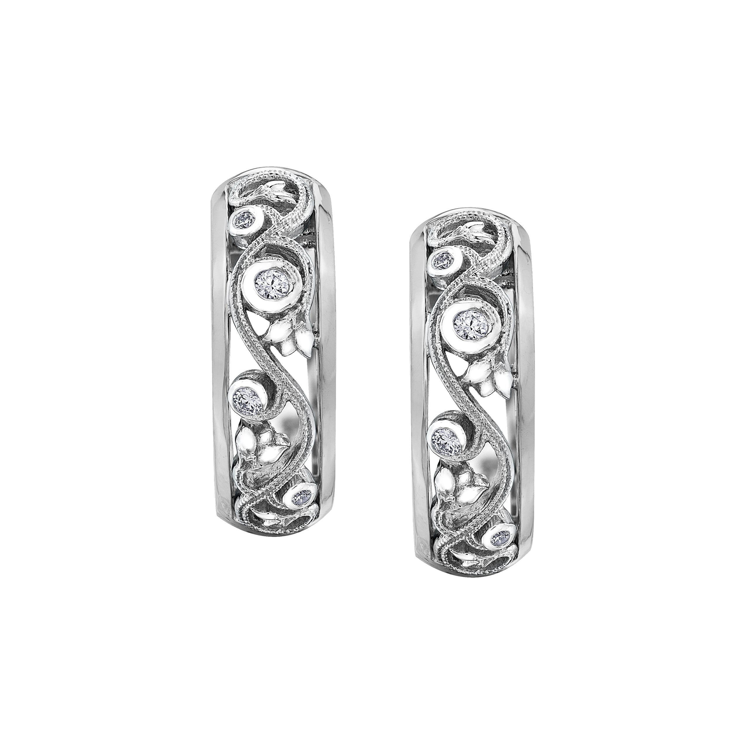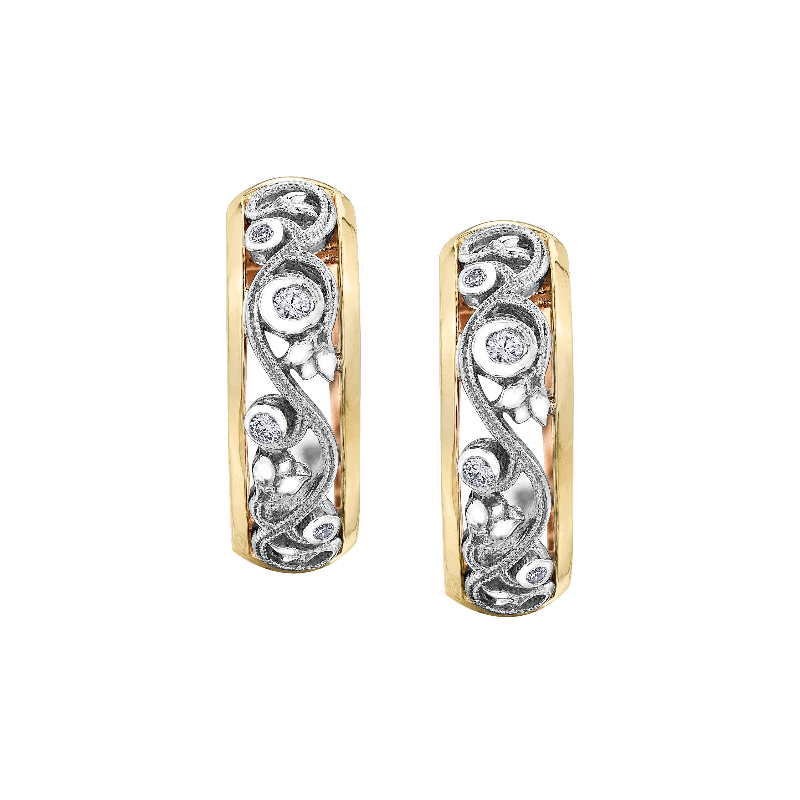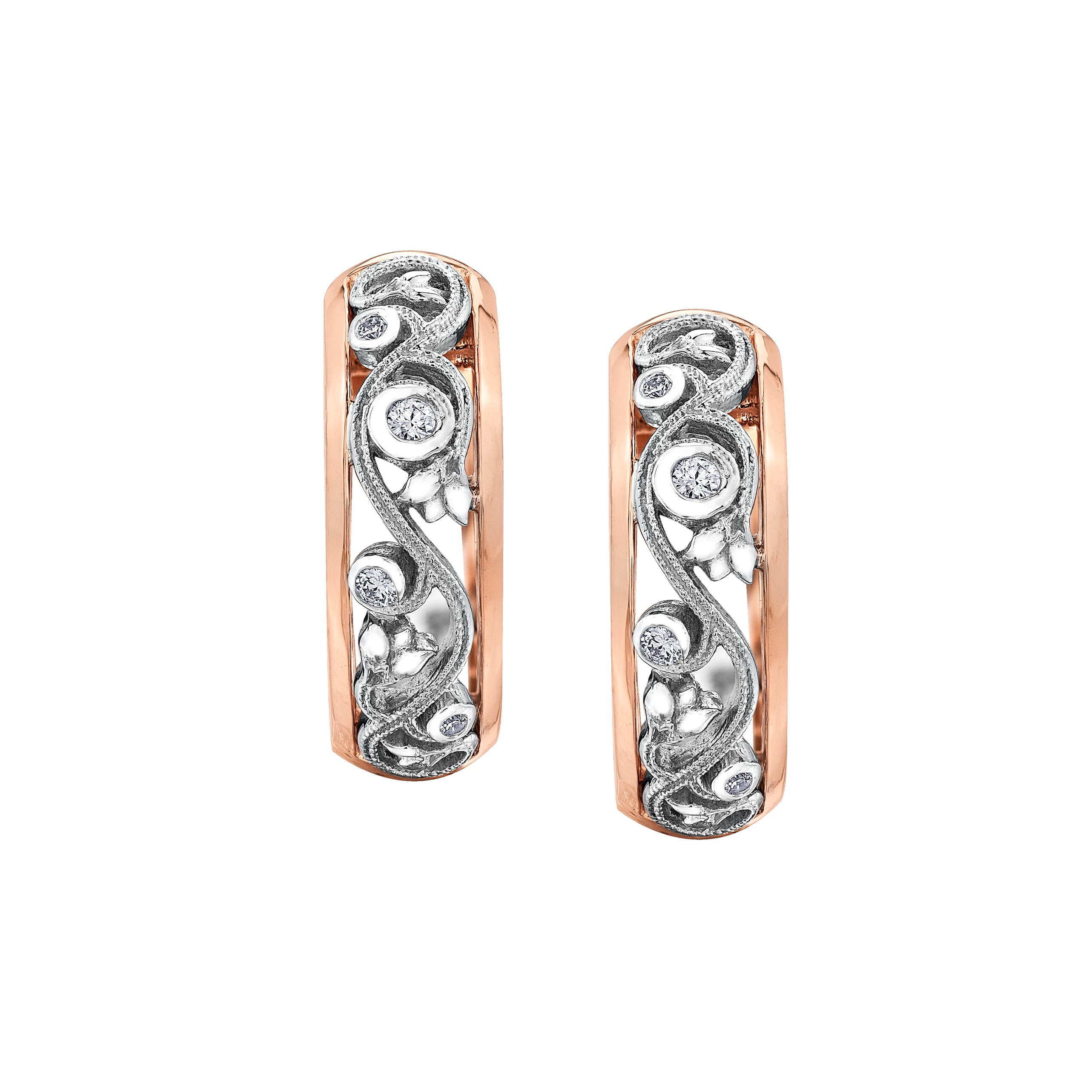 Enchanted garden hoop earring are the classic match for the Enchanted Garden Collection! Set in 14KT Certified Canadian Gold and featuring 0.06CTW round brilliant-cut Canadian diamonds and diamonds (0.03CTW), these hoop earrings are a perfect size for everyday and sure to be noticed. Total carat weight for the earrings is 0.09 and measurements are 18.5mm diametre x 6mm wide