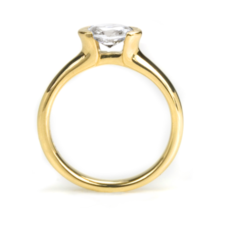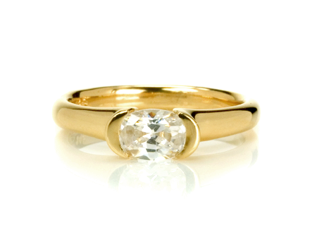The elegant Oval Diamond in the Essentials Crescent Moon Half Bezel setting available in 14k and 18k yellow or white gold and platinum. Oval diamond range for this setting is 0.40ct - 2ct.
