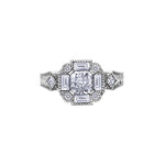 Indulge in pure sophistication with the Radiant Frost Ring. Experience a winter wonderland every day with its detailed frost design, handcrafted from 18KT Canadian Certified Gold. Wrapped around a radiant-cut Canadian diamond center, this wintry masterpiece is adorned with your choice of round and baguette-cut blue sapphires, or all diamonds. Let the delicate engravings and princess-cut diamond sides transport you to a timeless era of elegance.