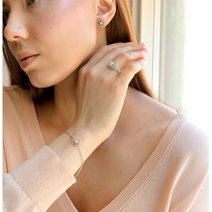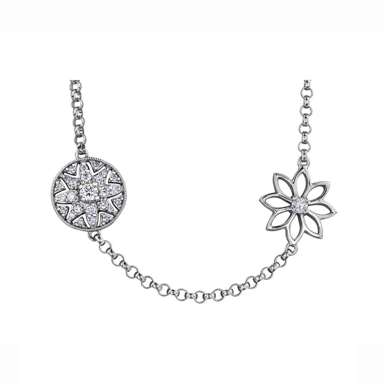 Seemingly floating above the waterline, the water lily evokes serenity and renewal. Set in 14KT Certified Canadian Gold, the Lily Bracelet scintillates with 0.28CTW round brilliant-cut Canadian diamonds and diamonds (0.36CTW). Total carat weight for the bracelet is 0.64.