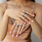 With a total carat weight of 0.48, this Achievement ring scintillates. Twelve 0.02CT round brilliant-cut diamonds sparkle from six marquise settings, with 24 one-point diamonds set between them. Wear it on its own or as part of a stack.