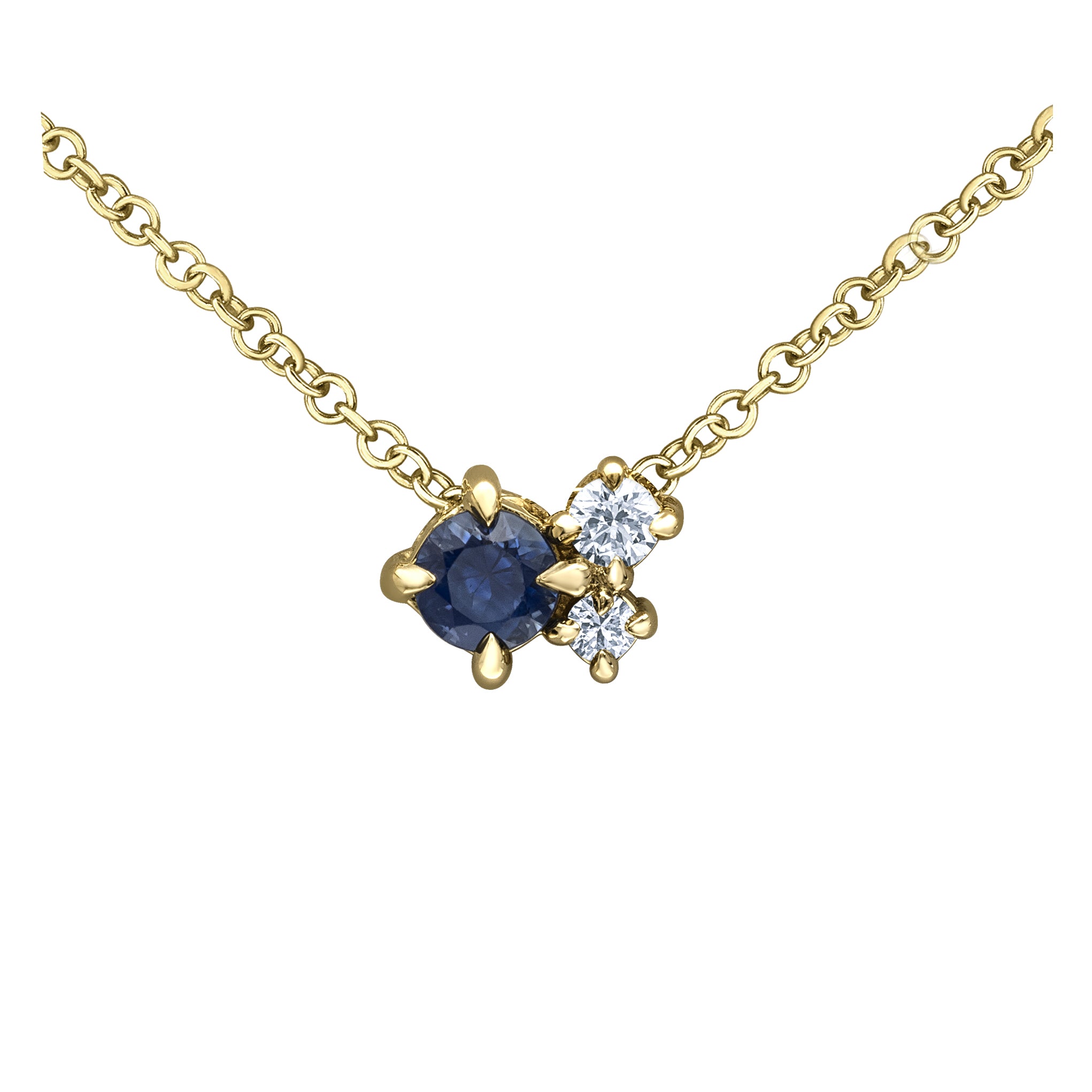Our Wild Trio Blue Sapphire Necklace is inspired by the arrival of springtime. The serene blue of a sapphire shines next to eye-catching Canadian diamonds. Crafted in 14 karat Canadian Certified Gold, the sapphire pendant is set with 0.06 carat total weight round brilliant cut Canadian diamonds and sapphire. Chain adjusts to 16", 17" 18".