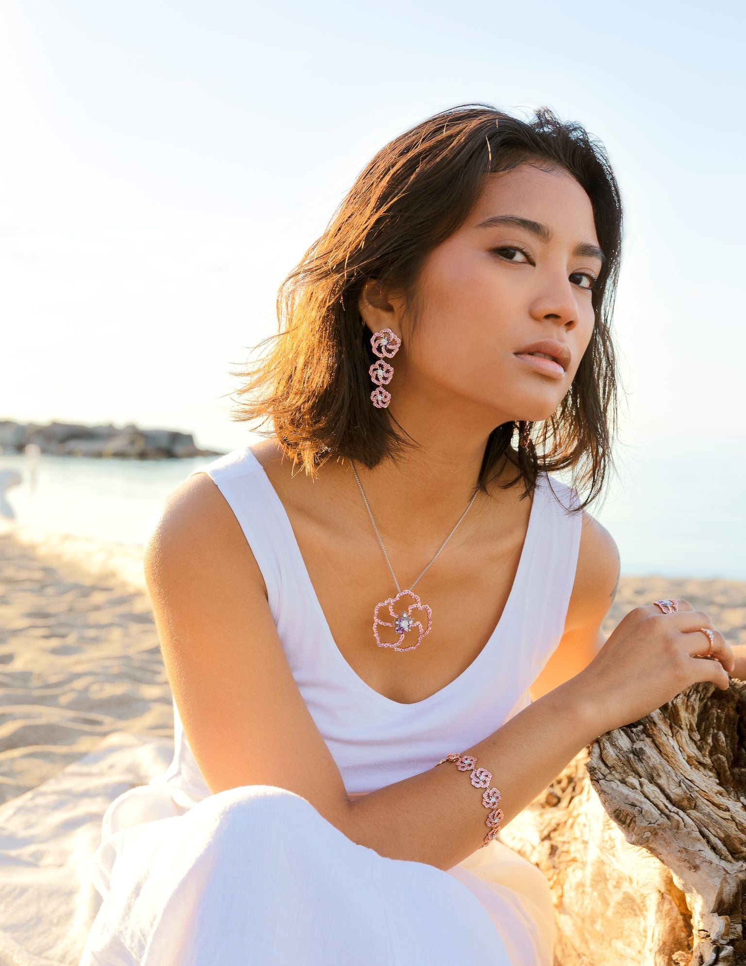 With the arrival of spring, wildflowers begin to cover the landscape with their beautiful colours. Show off your natural beauty with these statement earrings! Crafted in 14K rose and white, all white, or yellow and white Certified Canadian Gold, these dangling earrings are set with Canadian diamonds, purple amethyst and pink sapphires. Walk on the wild side!